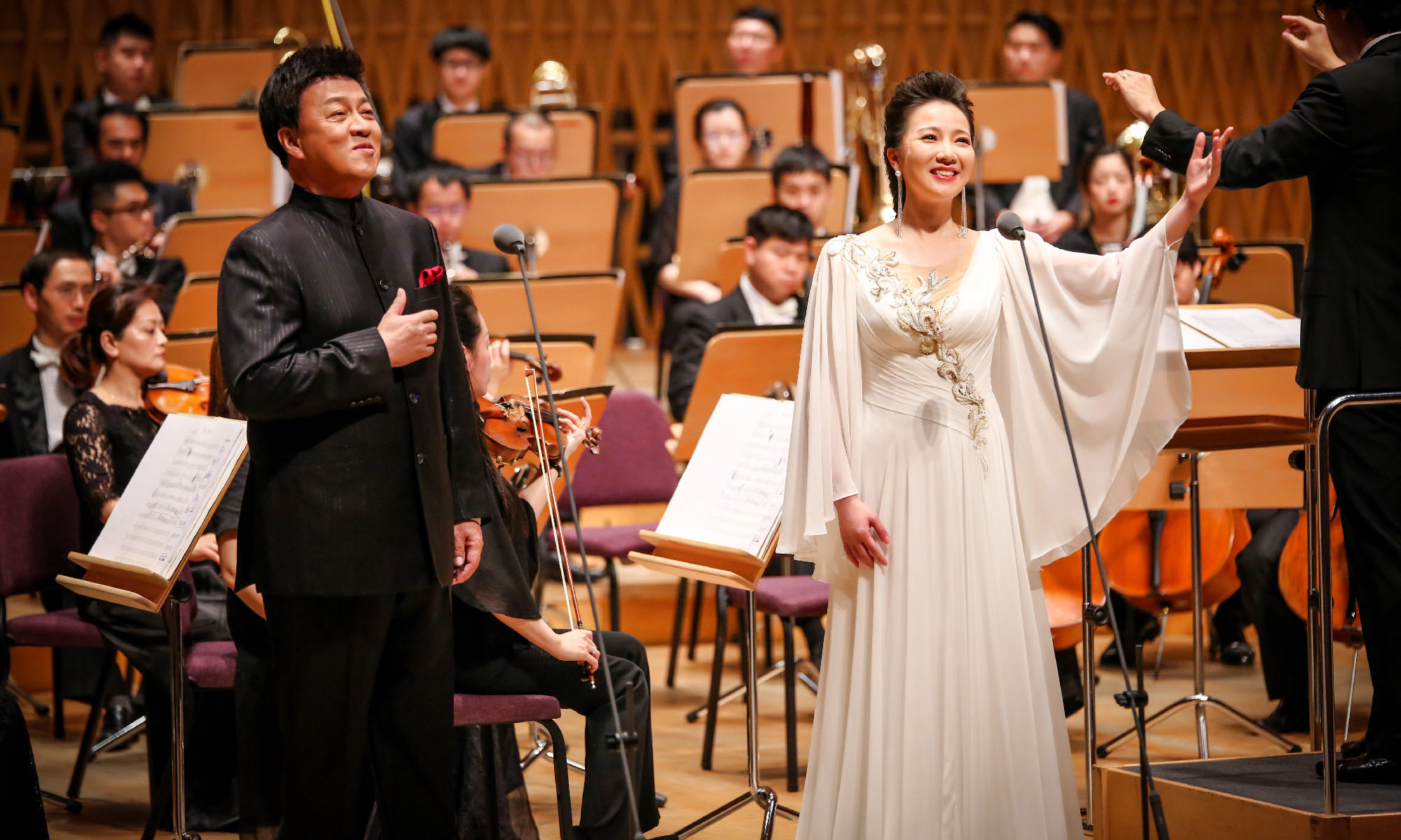 著名男中音歌唱家、上海音樂學(xué)院院長廖昌永以及著名男高音歌唱家呂繼宏的“助陣”令觀眾驚喜不已。此外,上海愛樂交響樂團(tuán)擔(dān)任樂隊(duì)伴奏,著名青年指揮家張亮擔(dān)任指揮,著名主持人張民權(quán)擔(dān)綱主持,共同攜手為音樂會助力。