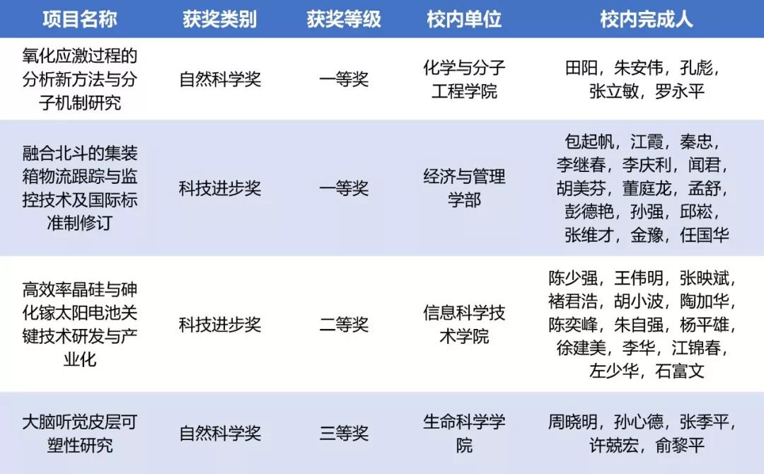 此外,華東師大信息科學技術學院陳少強教授團隊完成的《高效率晶硅與砷化鎵太陽電池關鍵技術研發與產業化》項目獲科技進步獎二等獎,生命科學學院周曉明教授團隊完成的《大腦聽覺皮層可塑性研究》項目獲自然科學獎三等獎。