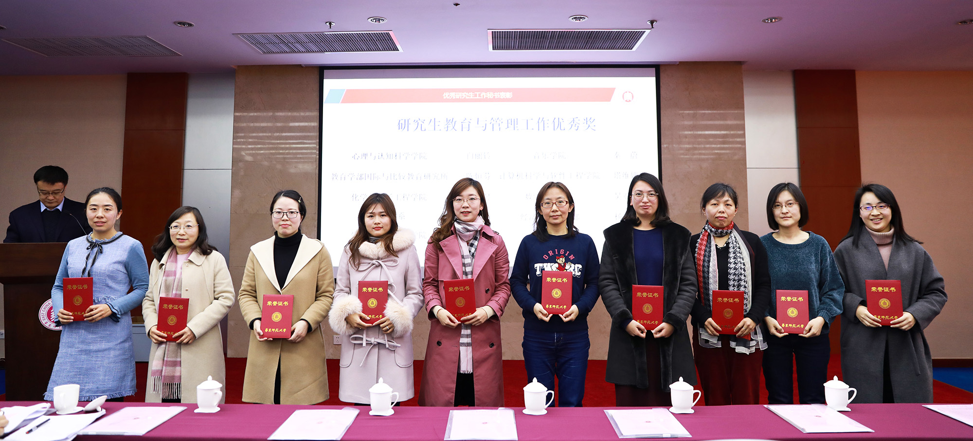 研究生工作秘書是學校研究生教育戰線的重要力量,發揮著非常重要而積極的作用。上一年度中,我校共有5位秘書榮獲“研究生教育與管理工作特別優秀獎”,10位秘書榮獲“研究生教育與管理工作優秀獎”。周傲英向美術學院昂慶等5位研究生秘書頒發了“研究生教育與管理工作特別貢獻獎”。校學位評定委員會副主席、化學與分子工程學院院長田陽向心理與認知科學學院白麗鈴等10位研究生秘書頒發了“研究生教育與管理工作優秀獎”。
