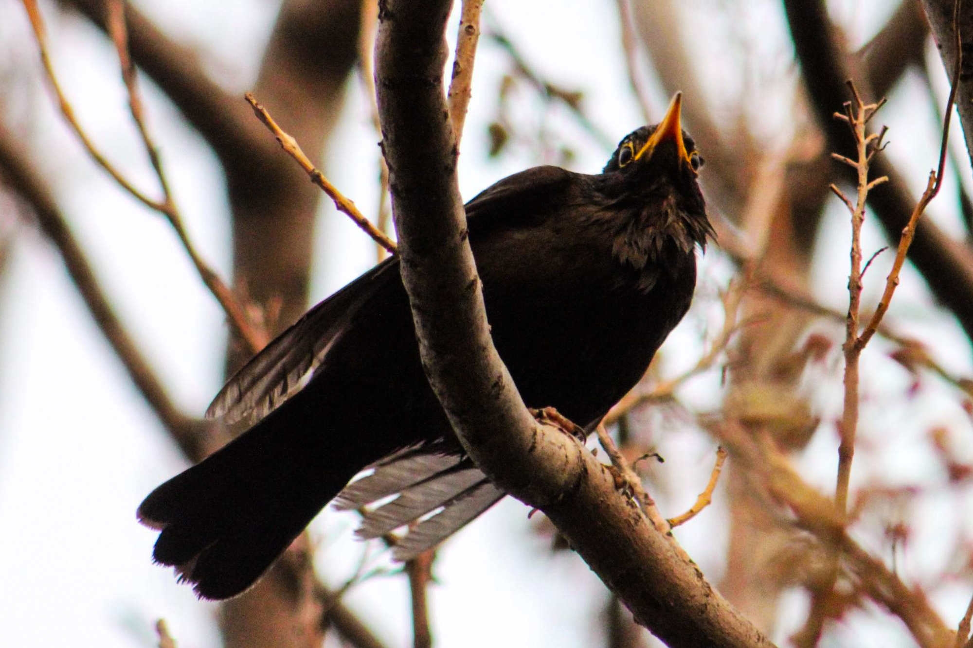 思群堂和群賢堂對角的“愛之坪”上,總有那么幾只黑色的鳥在踱步。這些黑色的鳥可不是烏鴉,它們的鳥喙是鮮亮的黃色,它叫烏鶇,喜歡旁若無人地在校園的草坪中翻找蚯蚓作為自己的美味。別看它們一身黑色,貌不驚人,其實它們的歌聲甚至勝于以鳴叫見長的畫眉、百靈等,在歐洲素有“百舌鳥”之稱。宿舍和教學樓的樓頂是它們餐后的休息場所,居高臨下的斑鳩們往往會在這種視野開闊的地方開始“咕咕~咕咕”地鳴叫。