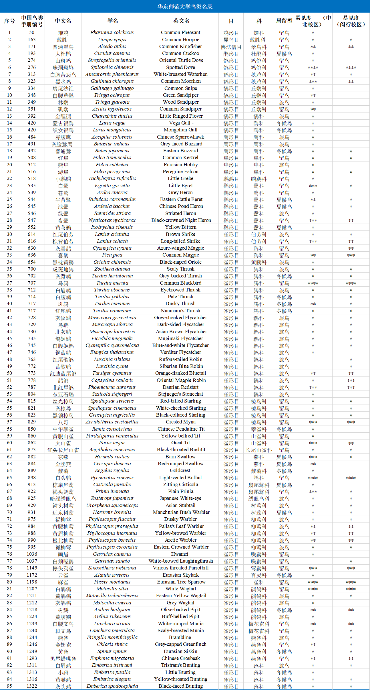 據目前的統計,有13目37科95種鳥類生活在校園之中。這些飛翔的小精靈與師生們朝夕相處,為校園生活增添了靈動,更是校園生態環境的重要組成部分。