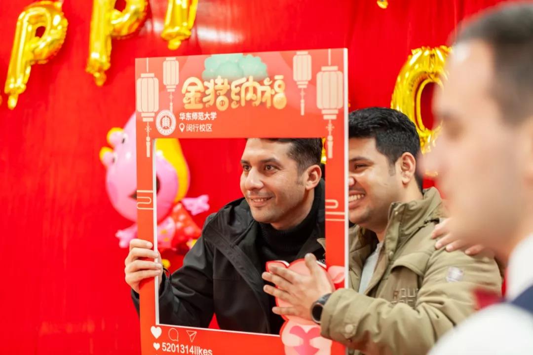 1月30日是農歷臘月二十五,一年一度的迎新春師生同樂會在師生們的翹首以盼中到來,經過精心的裝飾,閔行校區華閔餐廳一樓喜氣洋洋,年味十足。當天,寒假留校的中外學生與學校領導、教職員工歡聚一堂,喜迎豬年春節。當天下午,游園會活動首先在華閔餐廳內火熱開場。與“小豬佩奇”的親密合影,與新春燈謎的頭腦交鋒,與棉花糖的甜蜜邂逅,與玻璃寶“豬”的斗智斗勇……一個又一個熱鬧的游園活動不僅為同樂會做了充分預熱,更讓同學們在歡樂的互動游戲中感受到了學校大家庭熱烈的過年氣氛。