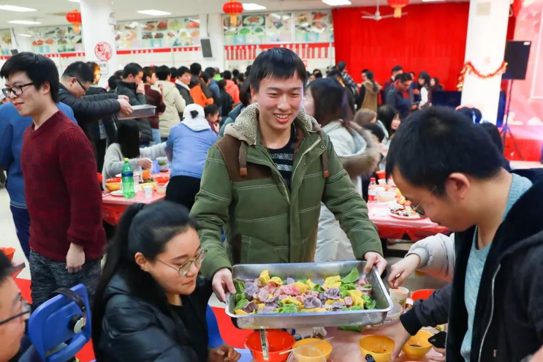 這邊精彩的節目輪番上演,那邊后勤員工與志愿者們已經將熱氣騰騰的餃子送到了大家面前。作為中華民族的傳統食物,餃子有著獨特的文化內涵,而師大特色“彩虹餃子”更飽含了新年五彩斑斕的美好寓意。由食堂大廚親手剁餡搟皮包的近萬只餃子,讓同學們品嘗到的不僅是舌尖上的美味,更是家的溫暖。大家吃著餃子,暢想來年,洋溢著中國傳統佳節的喜慶。