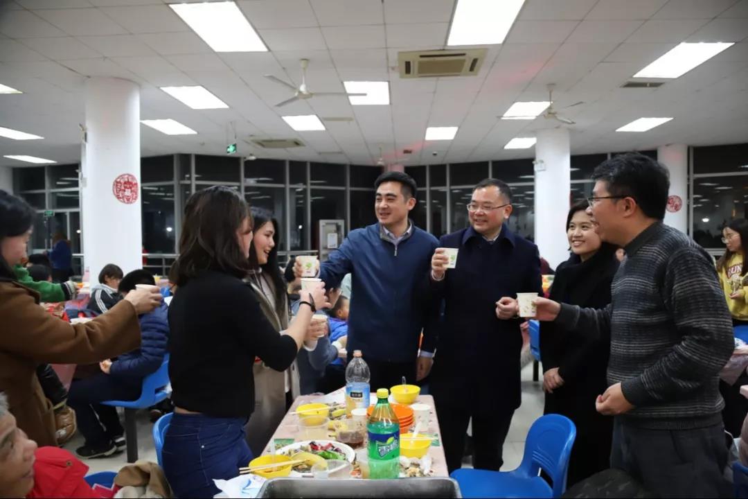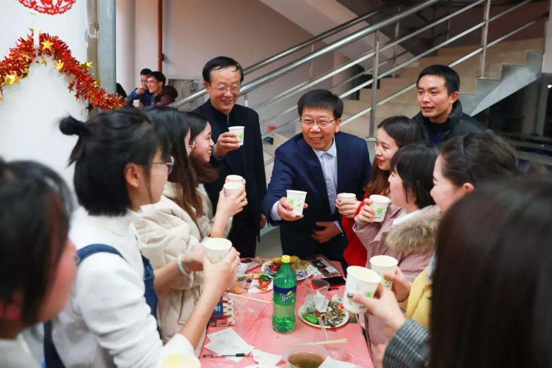 校領導童世駿、錢旭紅、王宏舟、楊昌利、李志斌、周傲英等與師生員工一同迎新,其樂融融。師生舉杯共祝,伴著歡快的音樂,講述一年來的收獲與感悟,展望2019奮斗年。