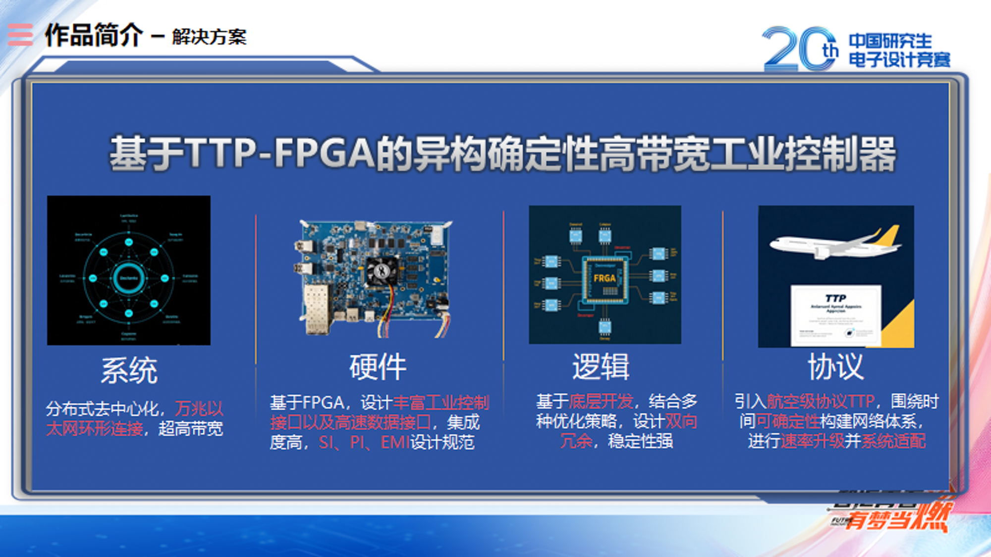 “凌工智控”團隊針對傳統工業控制系統實時性不足、協議異構、擴展性差等痛點,提出了一套高安全性、高帶寬、時間可確定的控制系統,自主研發16層硬件控制器、優化航空級TTP協議,實現了10Gbps高速可確定性通信,支持數十路高清視頻同步傳輸和上百個工業設備實時控制,為工業控制從“能聯”到“智能協同”提供了自主可控的解決方案。