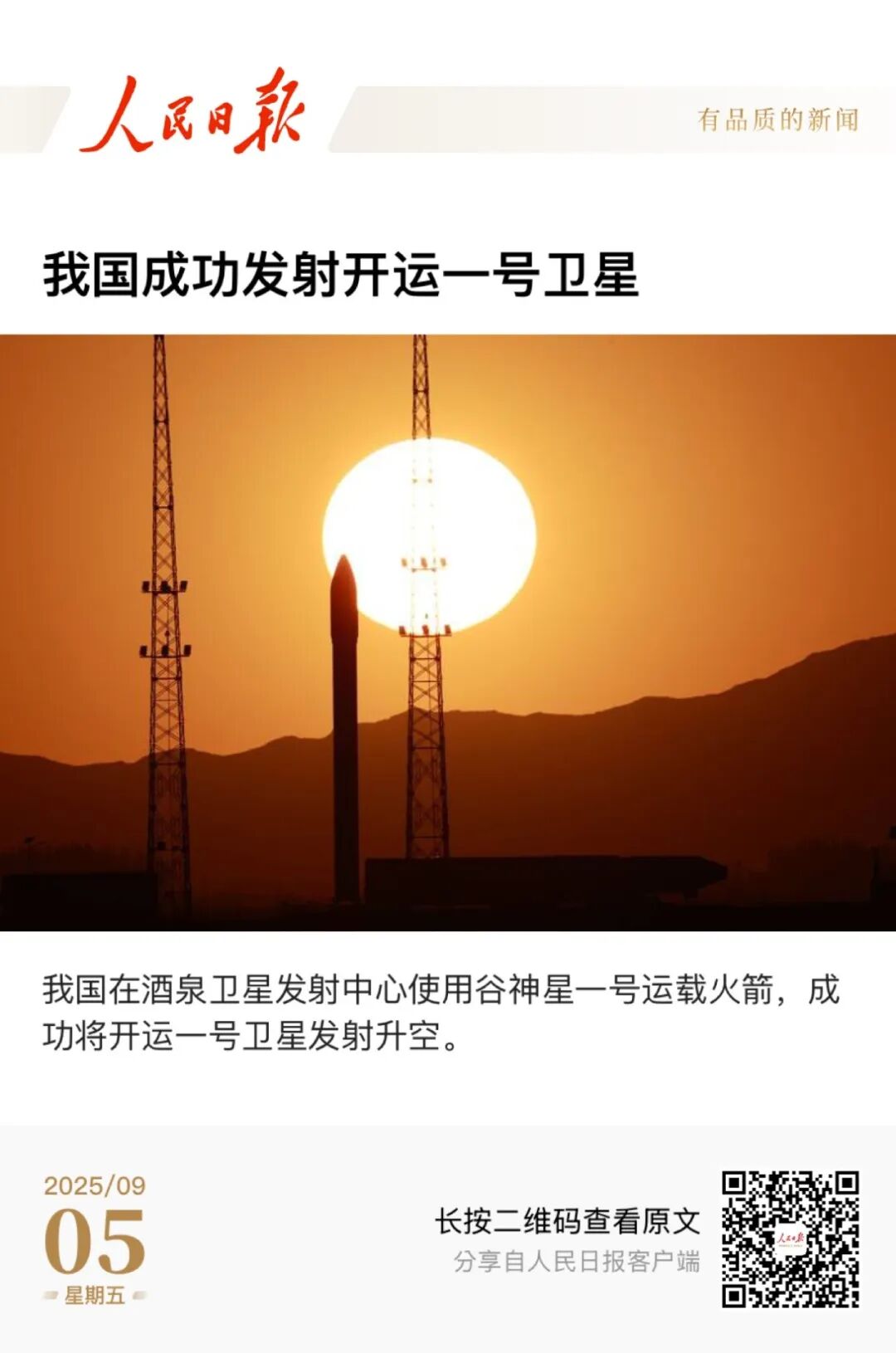 北京時間2025年9月5日19時39分,我國在酒泉衛(wèi)星發(fā)射中心使用星河動力的“谷神星一號”運載火箭成功將“開運一號”衛(wèi)星發(fā)射升空。華東師大研制的“光華百年”系列星載產品被成功送入預定軌道,首次實現了華東師范大學參研衛(wèi)星的成功發(fā)射,承載百年榮光與科技報國理想,奔赴浩瀚蒼穹!