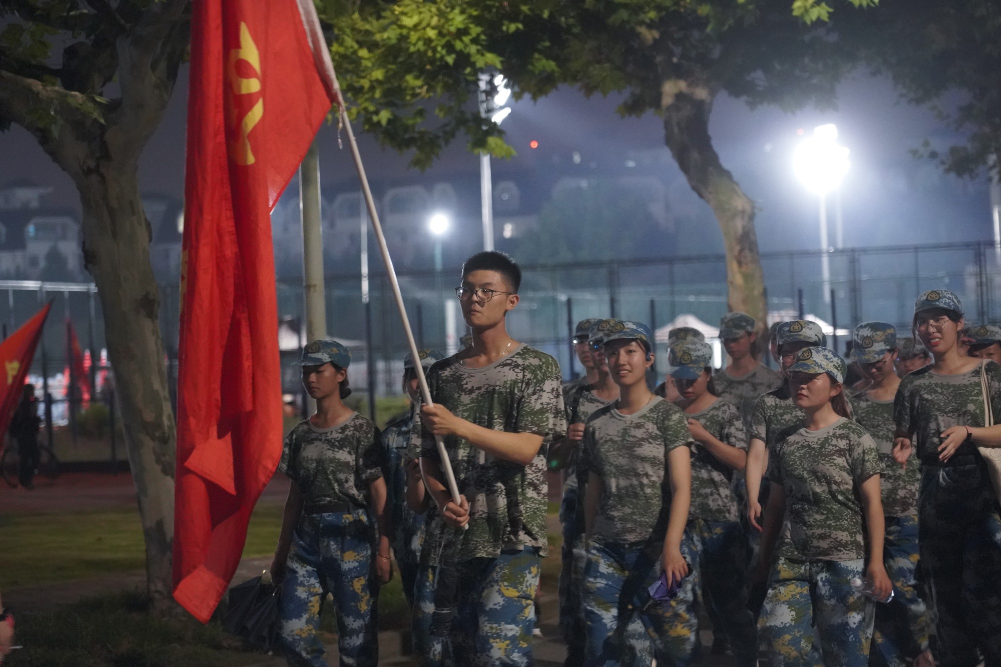 8月27日晚8點半,華東師大閔行校區西操場上,兩個小時的軍訓合唱比賽彩排剛結束,一陣急促的號角聲又響起。16個連2600名參訓學生迅速整隊、清點人數、行前動員……短短幾分鐘,就在西操場集結完畢,準備出征校園夜間行軍。“開進!”隨著指揮員一聲令下,同學們的帶領下,豪情萬丈、氣勢如虹,邁上了行軍之路。