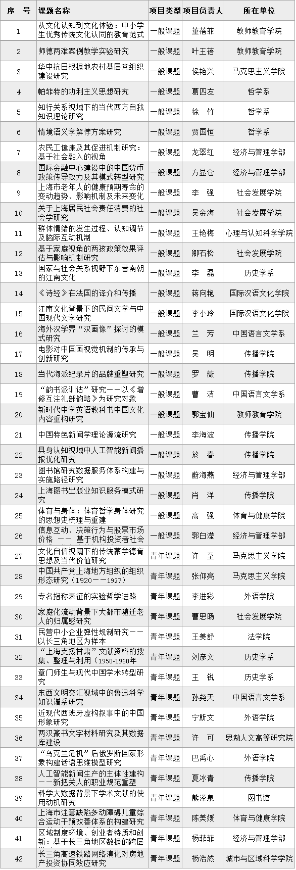 近日,2019年上海市社科規劃一般、青年課題立項結果公布,我校共有42項課題獲得立項,排名第二。其中一般課題26項,青年課題16項,總立項數比上一年度增加4項。