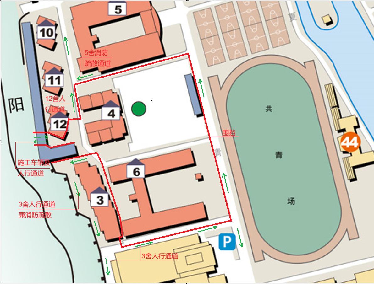施工期間,若因特殊情況需要停工的,工期順延。師生們請注意避開或繞行施工區域(詳見附圖),保證安全。