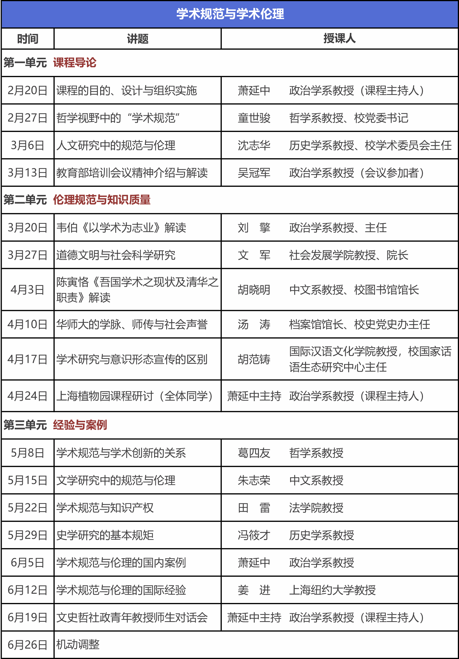 新學期,我校研究生院全新推出《學術(shù)規(guī)范與學術(shù)倫理》課。該課程由政治學系資深教授蕭延中任主持人,14位教授聯(lián)袂主講?!爱斚聦W術(shù)規(guī)范和倫理問題越來越突出,這門課程的開設(shè)契合了社會及學校的需求。而開設(shè)這門課設(shè)...