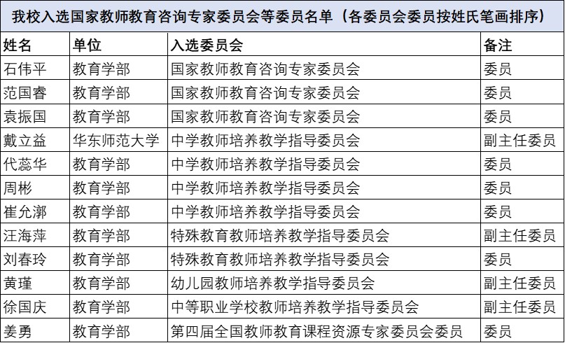 近日,教育部下發了《教育部關于成立國家教師教育咨詢專家委員會、2019-2022年教育部高等學校幼兒園教師培養等教學指導委員會和第四屆全國教師教育課程資源專家委員會的通知》,公布了國家教師教育咨詢專家委員會、2...